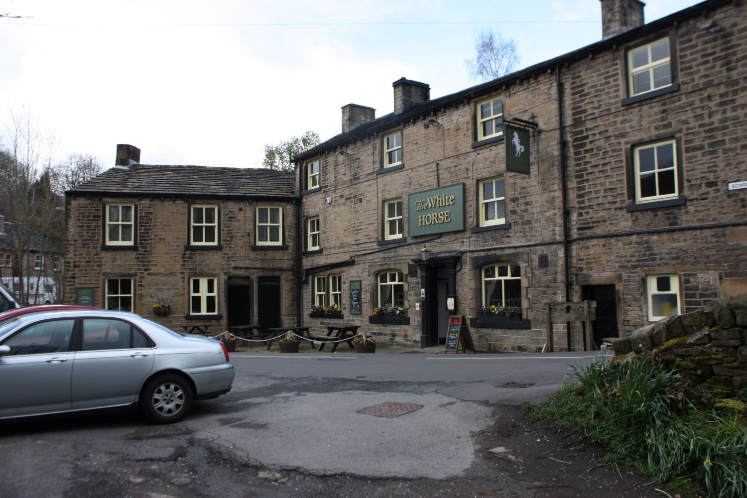 The White Horse, Jackson Bridge, Holmfirth, which has featured prominently in all the series of Last of the Summer Wine. We spent two nights here, our room being the right hand upstairs window in the “extension” on the left, accessed via the black door below – i.e. without having to go through the pub. |