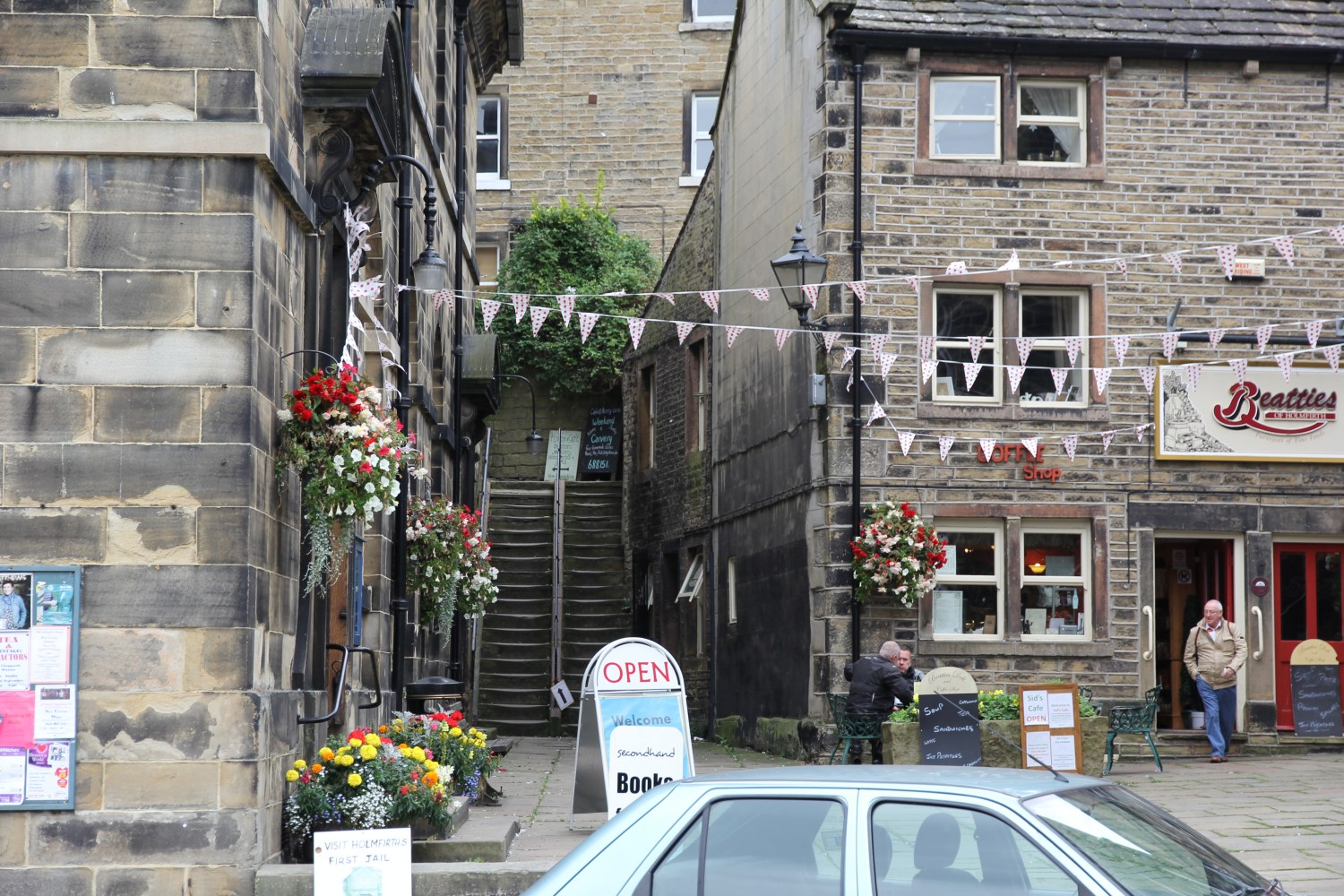 Swinging round to the left from the previous photo, we see the steps leading up the side of the Parish Church (on the left), towards the houses where Clegg and Howard & Pearl lived in the earlier series.