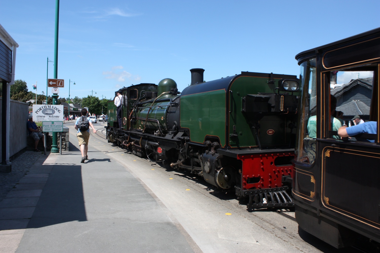 The Beyer Garrett running along the street and over the river bridge before returning to its own trackway.