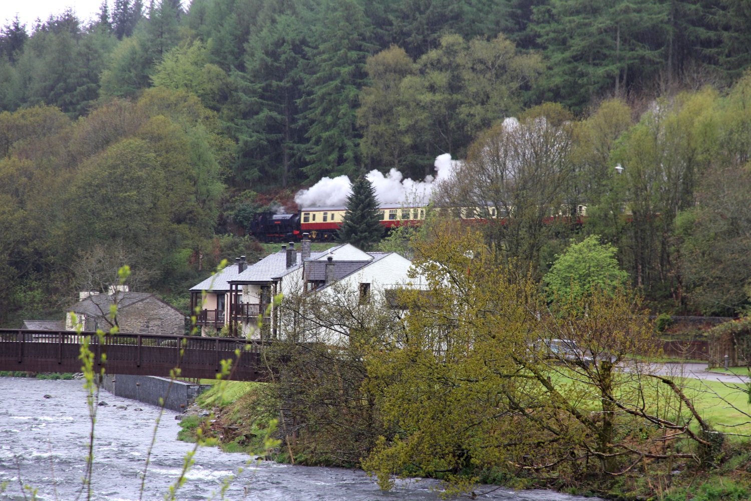 Lakeside & Haverthwaite Railway train heading for Haverthwaite, seen from the Lakeland Motor Museum.