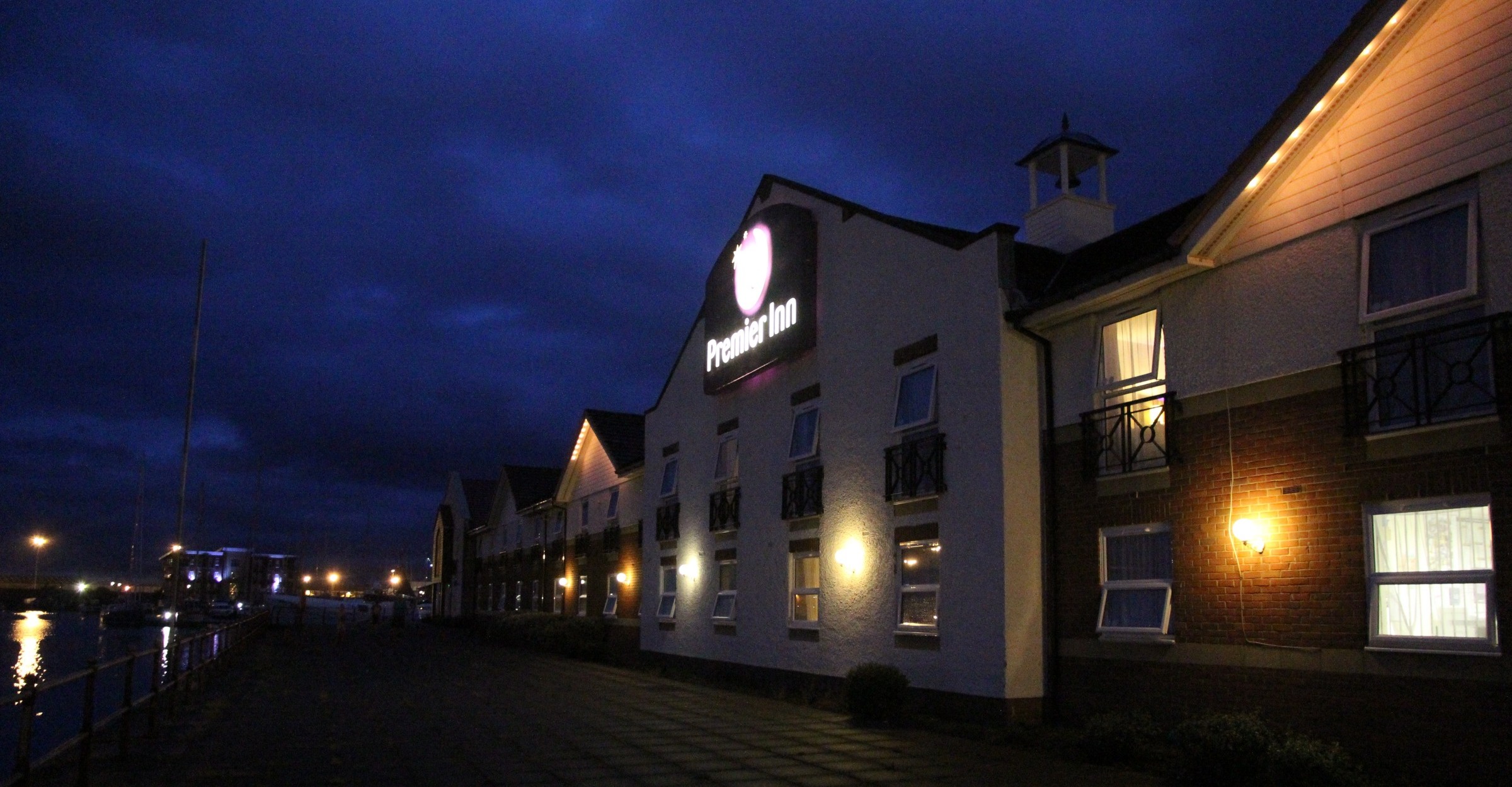 The Premier Inn is surrounded on three sides by water. This is the back, overlooking the Inner Marina.