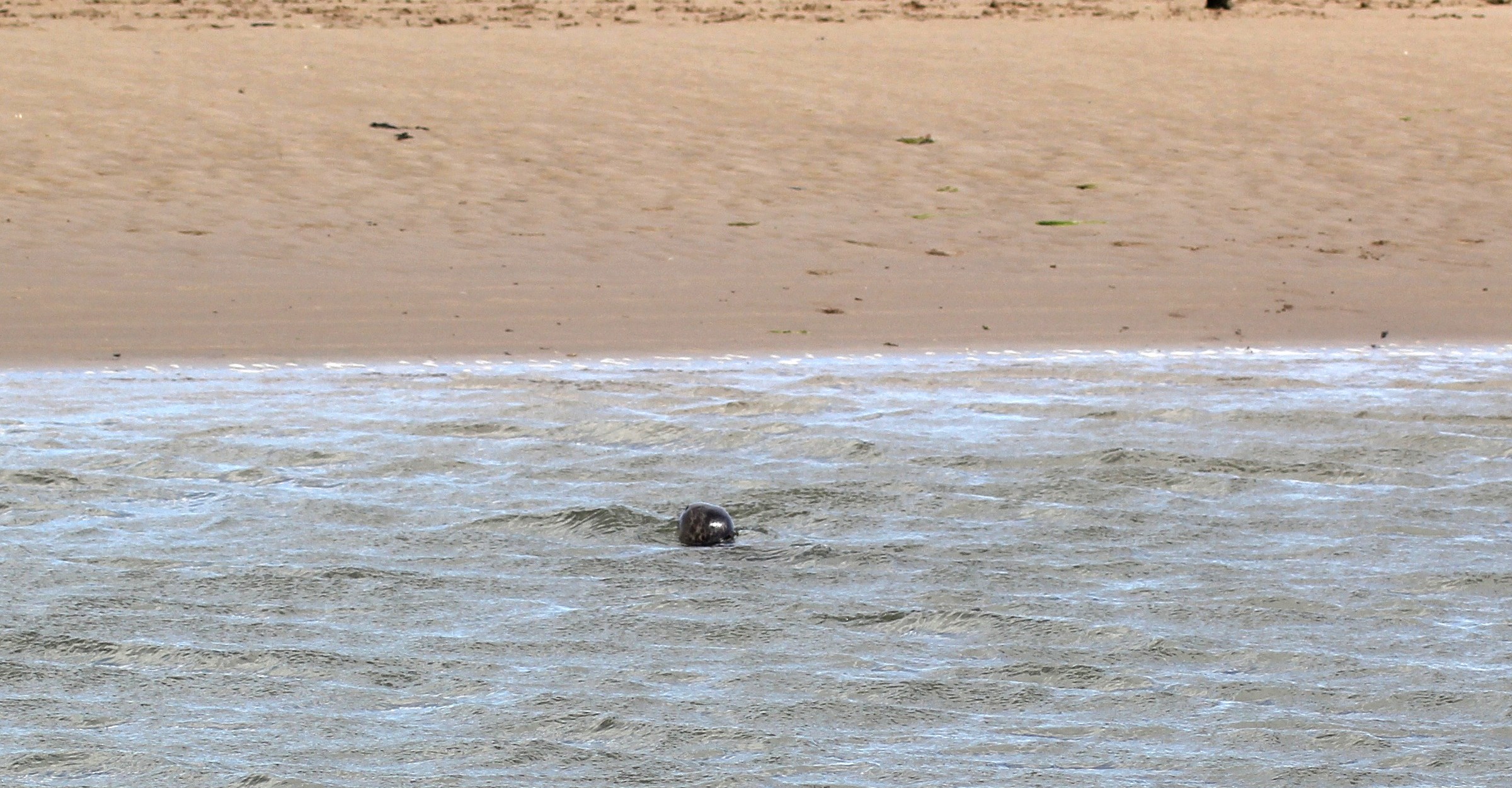 This young seal was trapped in a pool which had been cut off by the receding tide, but the pool was large enough for him and would be reconnected to the sea within a couple of hours.