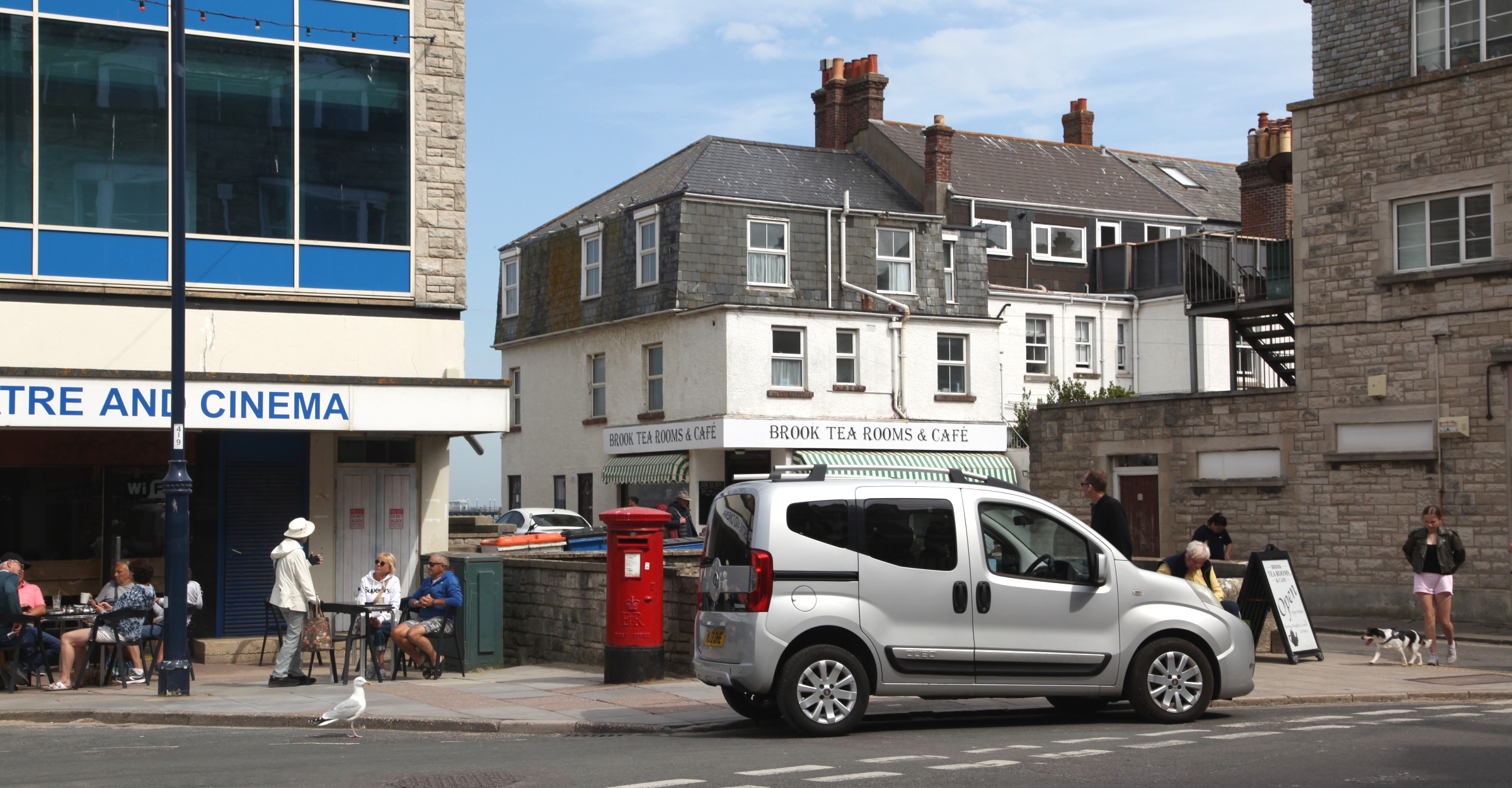 From the centre of the town our (two floor) flat is the one above the Tea Rooms to the right of the drain pipes, accessed by external stairs to the right hand side of the Tea Rooms. On the left is the seafront Theatre/Cinema complex. |