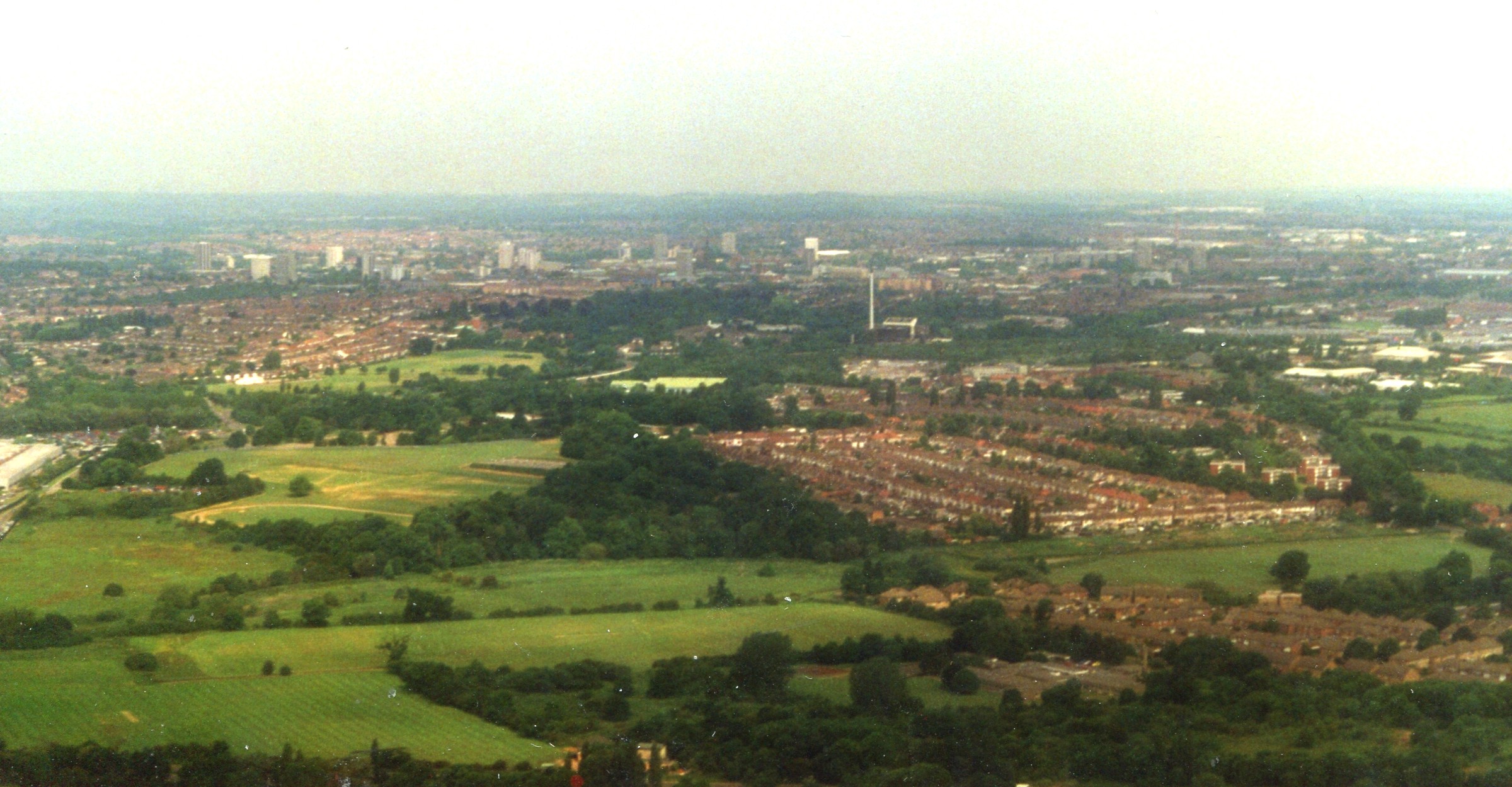 Towards the city from near London Rd island. Whitley incinerator in the centre, Cheylesmore to the left, city centre top centre.