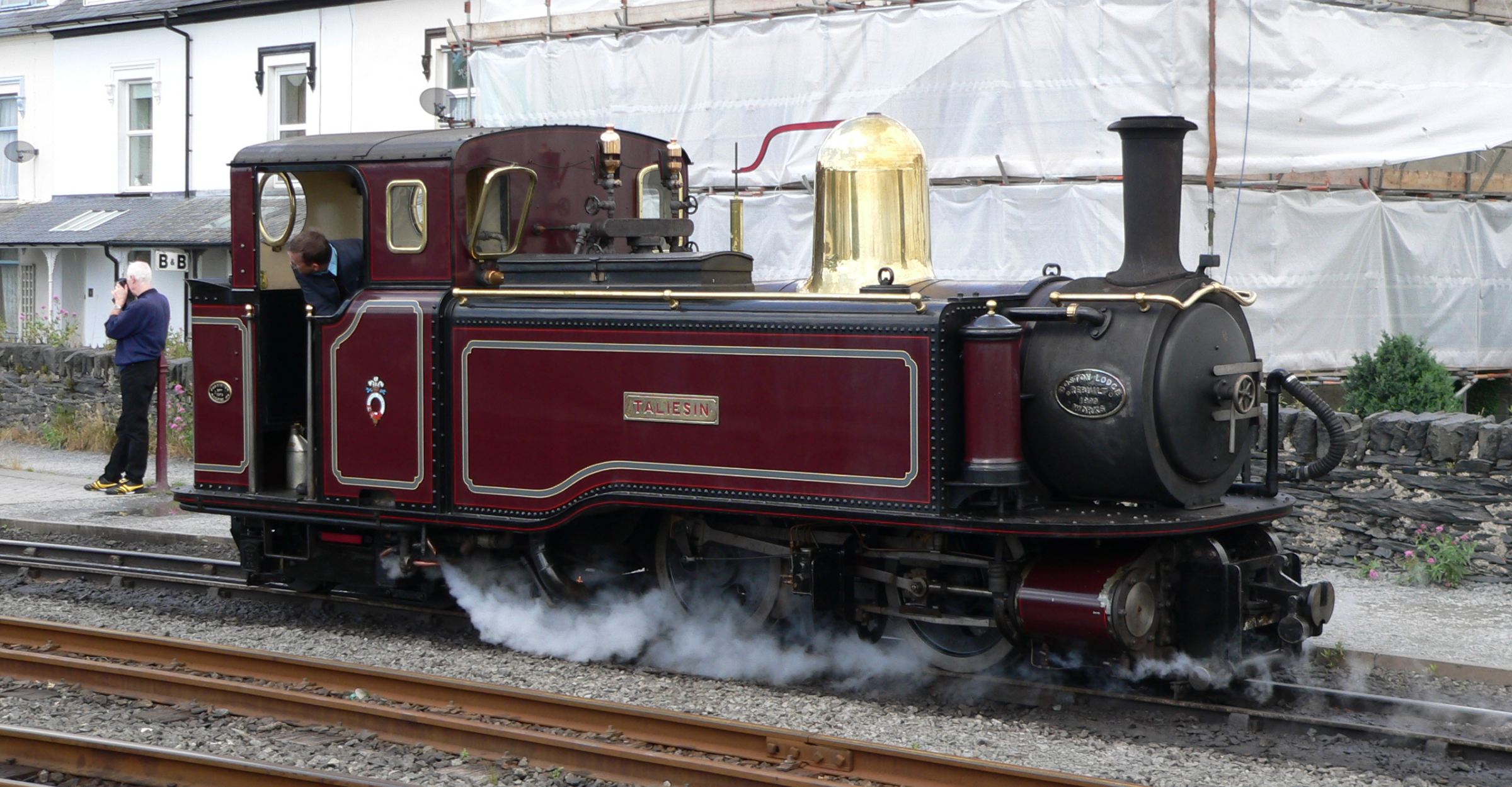 Ffestiniog Railway, Portmadoc, and Taliesin, the unique "single Fairlie" locomotive, built by the FR in 1999.