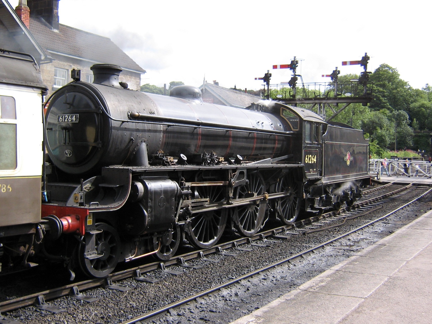 North Yorkshire Moors Railway. This 4-6-0 loco started life in 1947 as LNER No.1264, becoming 61264 on the formation of British Rail a year later. Built by the North British Locomotive Company, it spent the first 13 years of its life on the Great Eastern Main Line, although was classified under the BR scheme as 5MT (mixed traffic). |