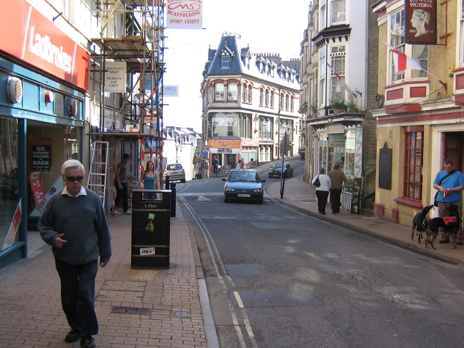 Ilfracombe High Street. Fore Street is the one going down the left side of the building in the centre. I can recommend the butchers, Turtons, to the left of the Victoria!