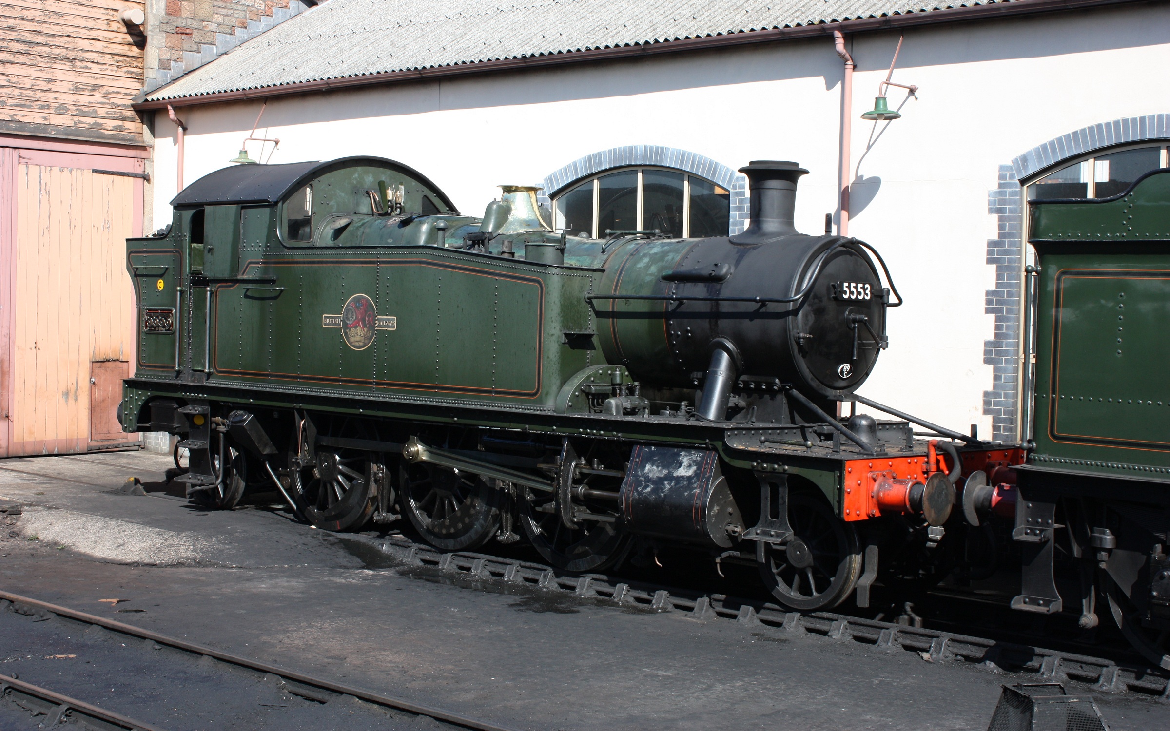 5553: A GWR 2-6-2T Prairie Tank, built at Swindon in 1928, and in service till 1961. It went to the famous Woodhams scrapyard on Barry Island, and holds the record for being the longest resident in the scrapyard, being the last loco to leave, in 1990 after 28 years! Seen here at Minehead. |
