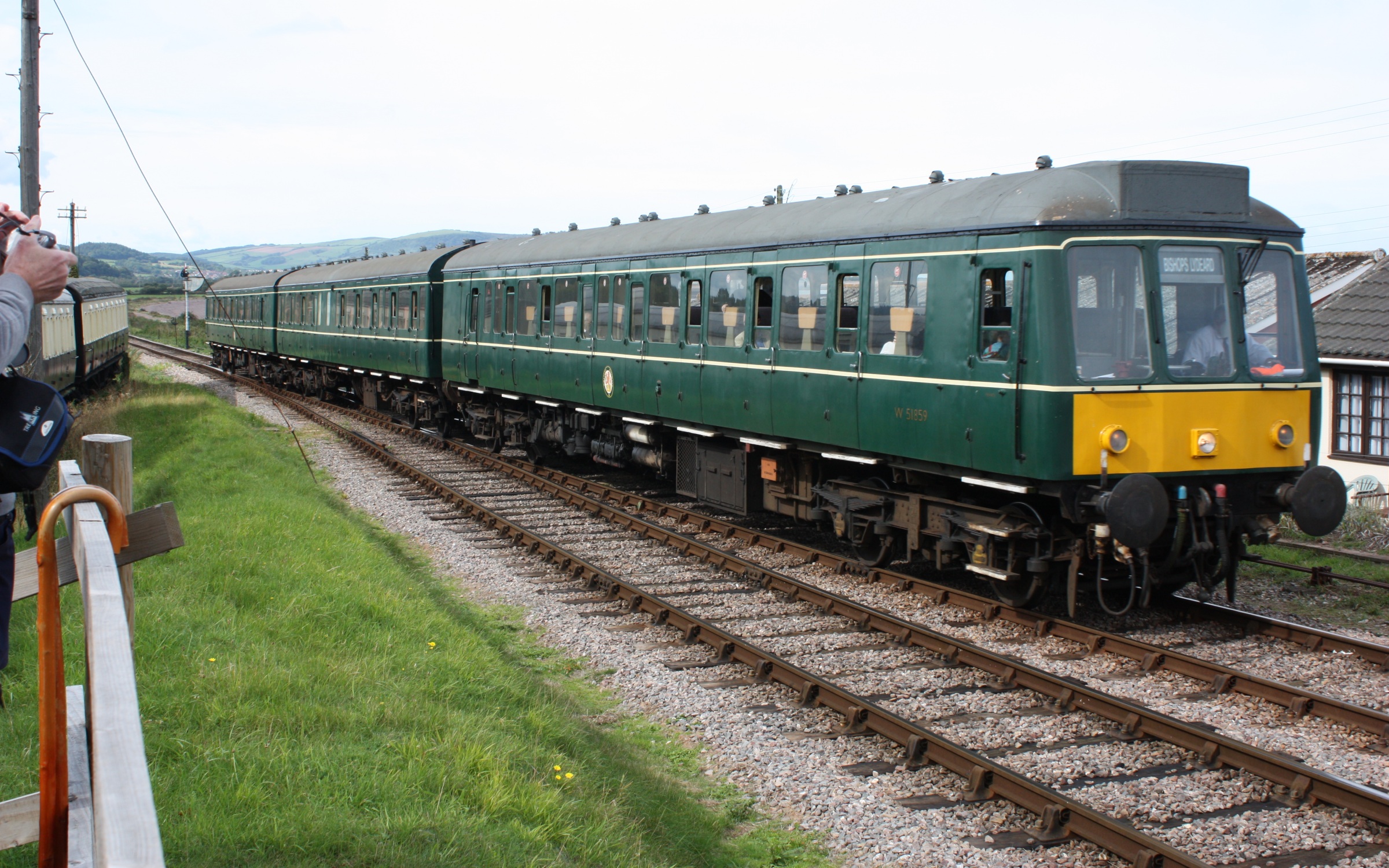 W 51859: A Diesel Multiple Unit (DMU) Class 115 Driving Motor Brake Second, built at Derby in 1960, approaching Blue Anchor from Minehead.