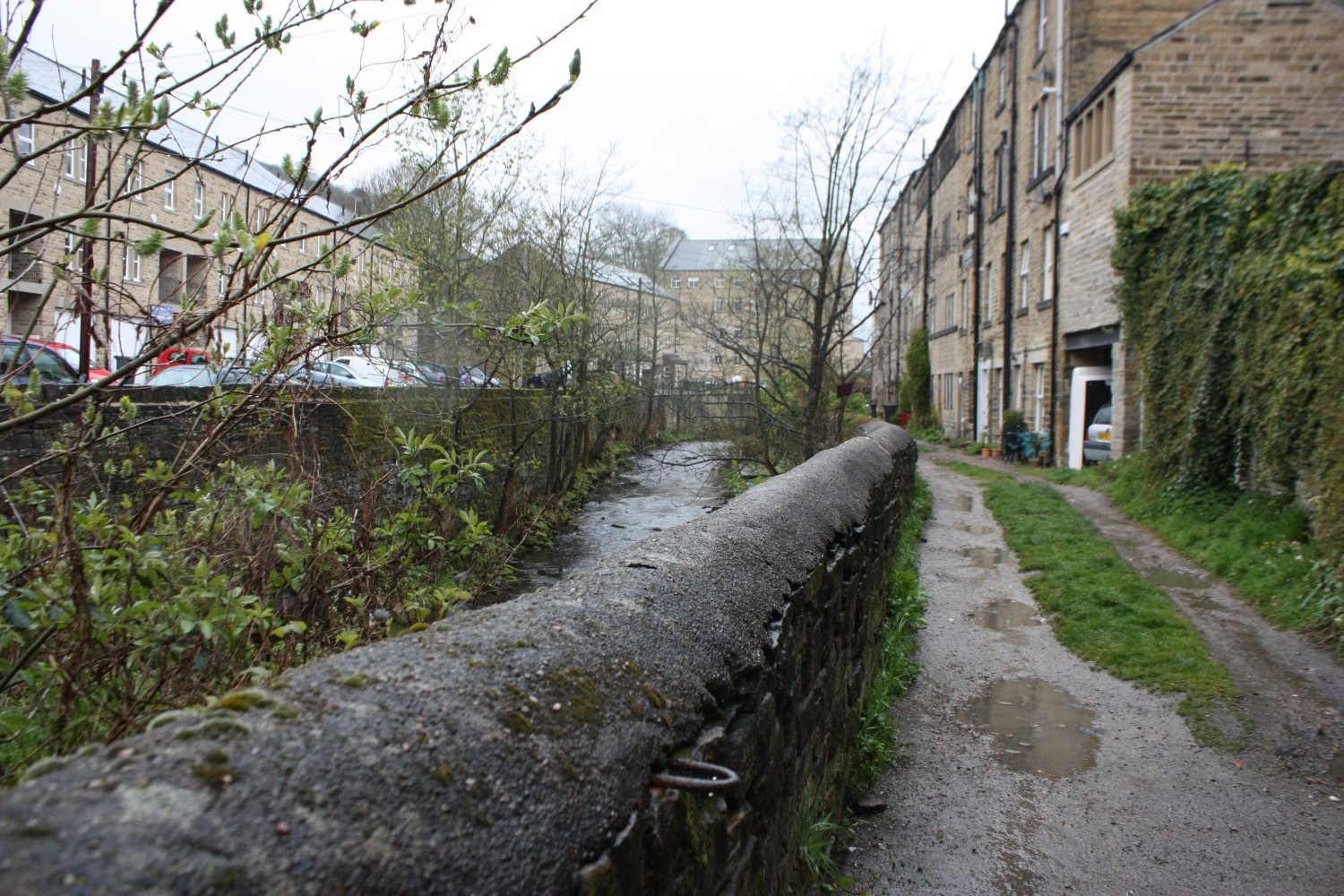 The view along the River Holme. Nora’s and Compo’s houses are just off to the right of picture.