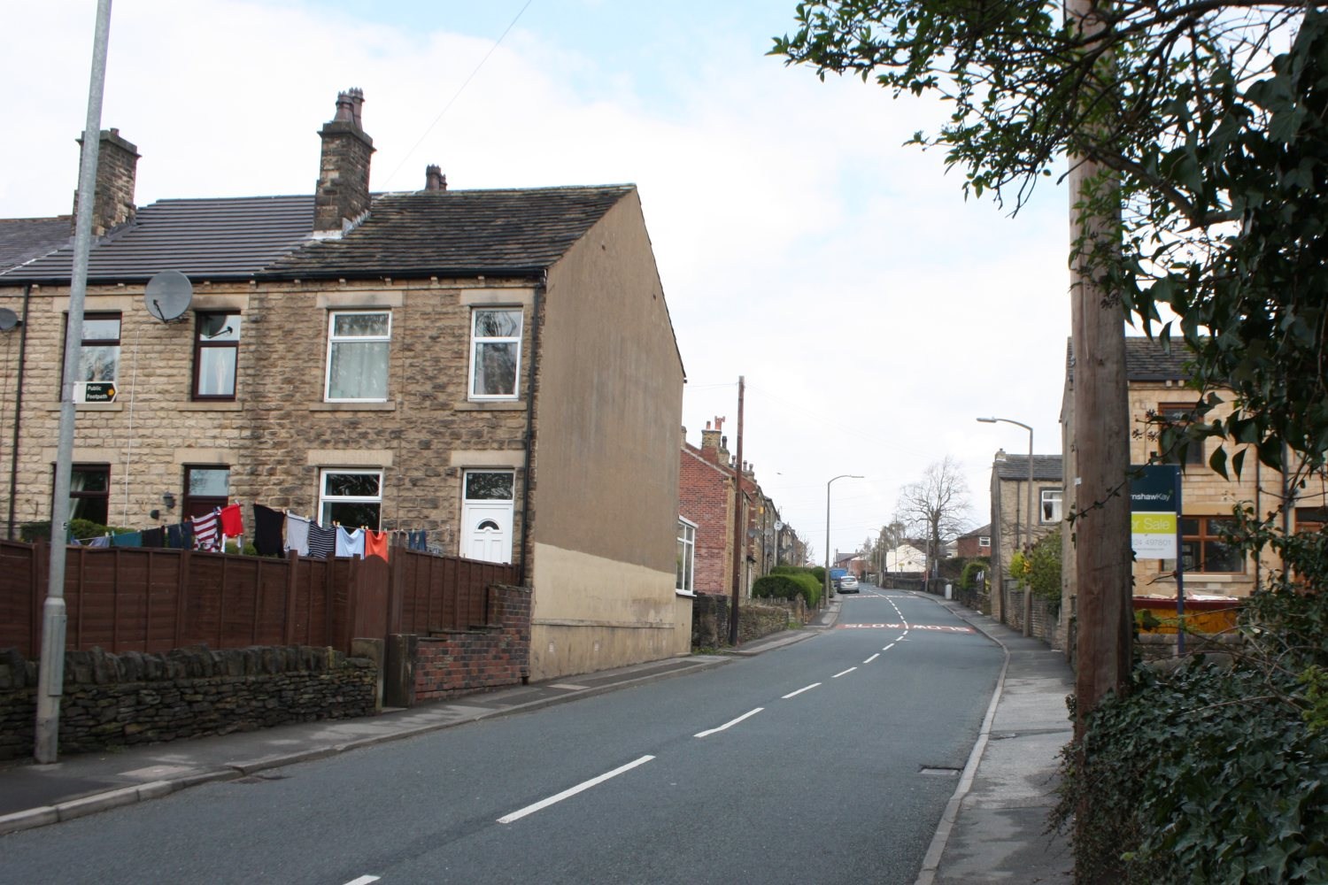 Looking up Greenside Road, with my paternal grandmother’s house on the left with the white door.