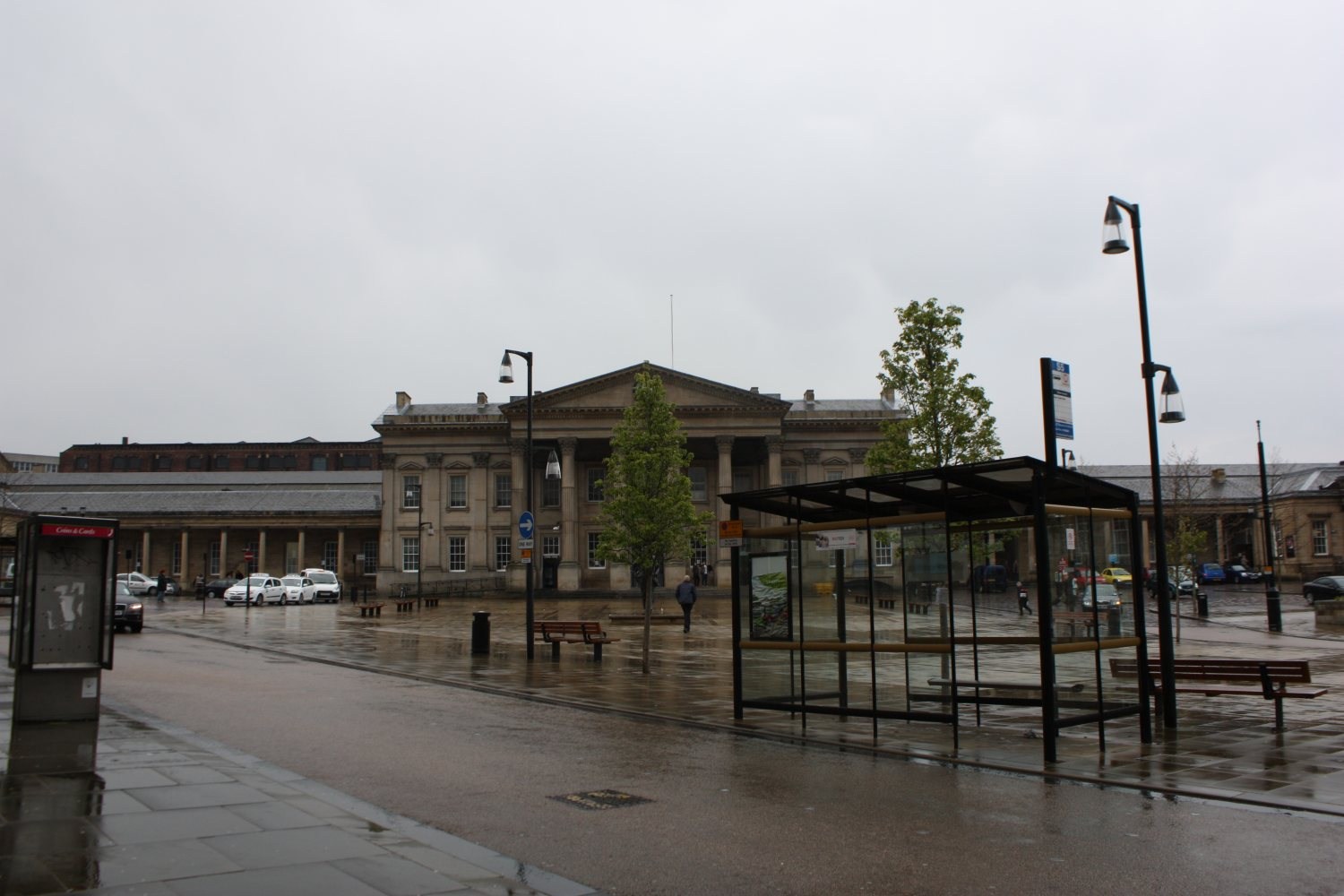 Huddersfield Railway Station frontage. Completed in 1850 it is considered to be one of the finest examples of this type of architecture, and is now a Grade 1 Listed Building.