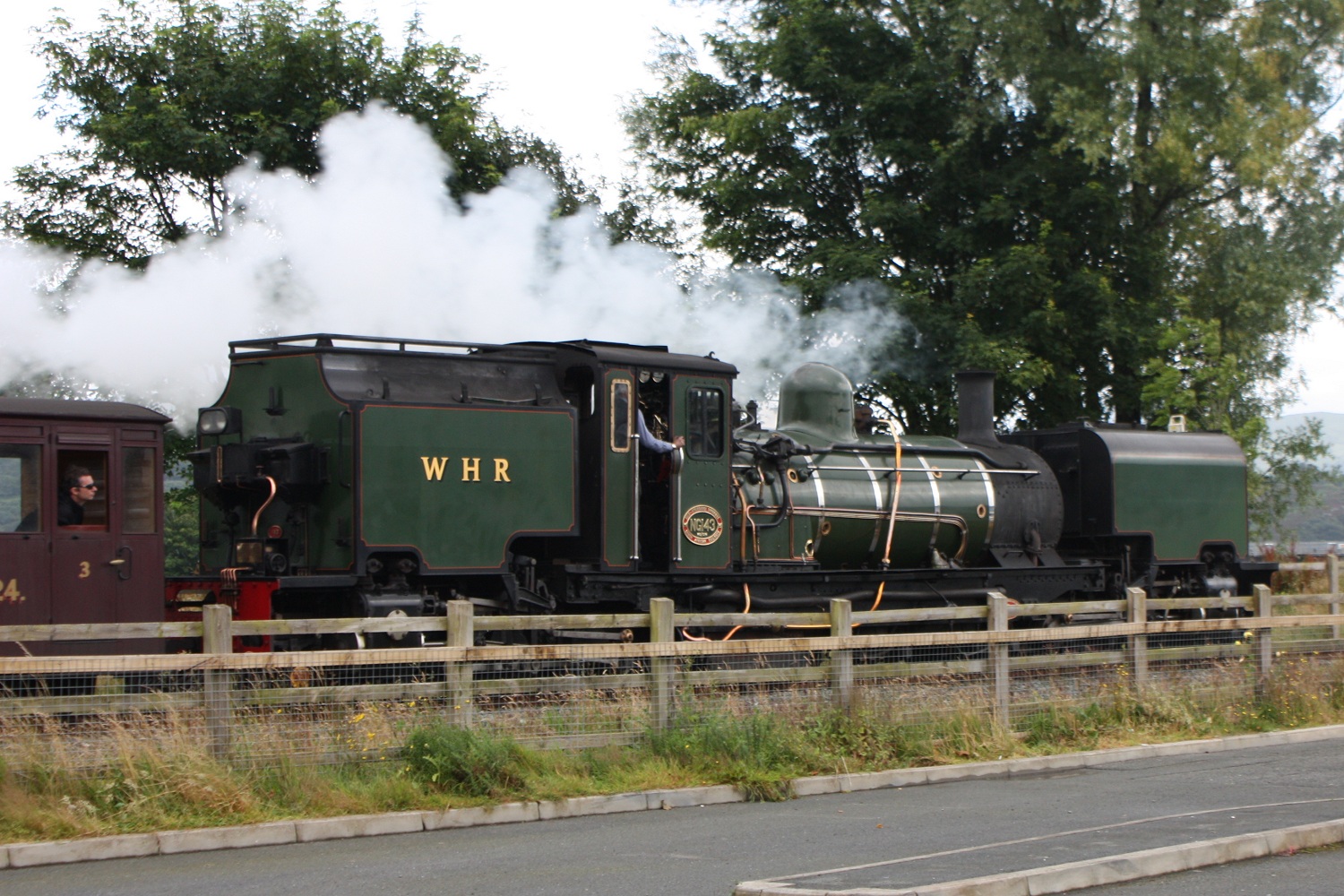 A Welsh Highland Railway Beyer-Garratt heads towards the new level crossing that now joins the WHR to the Ffestiniog Railway, which will take it into the Ffestiniog's Station at Portmadoc.