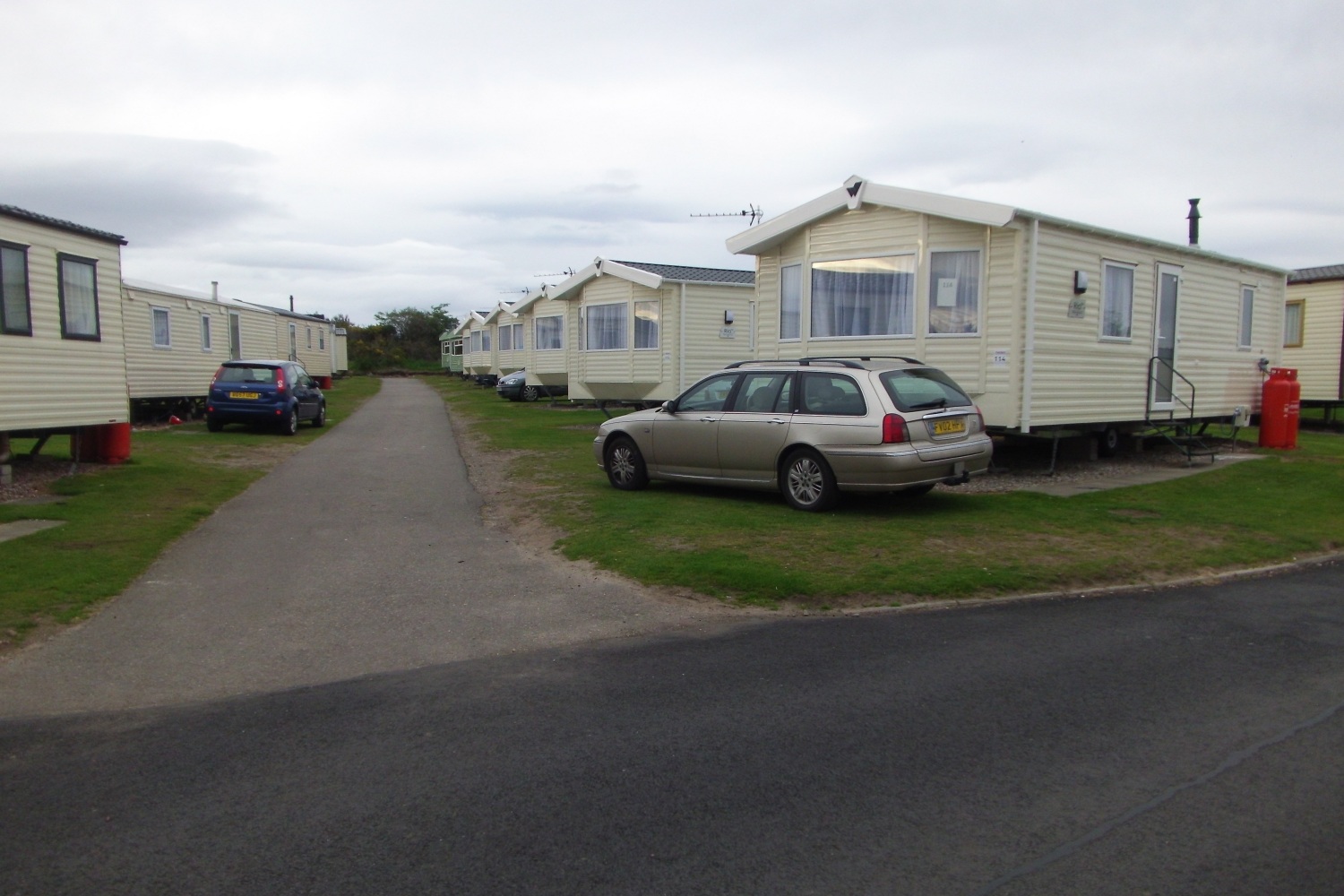 Caravan at Nairn Lochloy. At the end of the roadway are the sand dunes and beach.