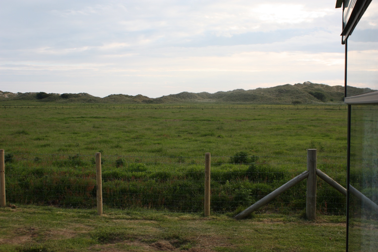 The view from the front of the caravan across to the sand dunes, with the beach just the other side of the dunes.
