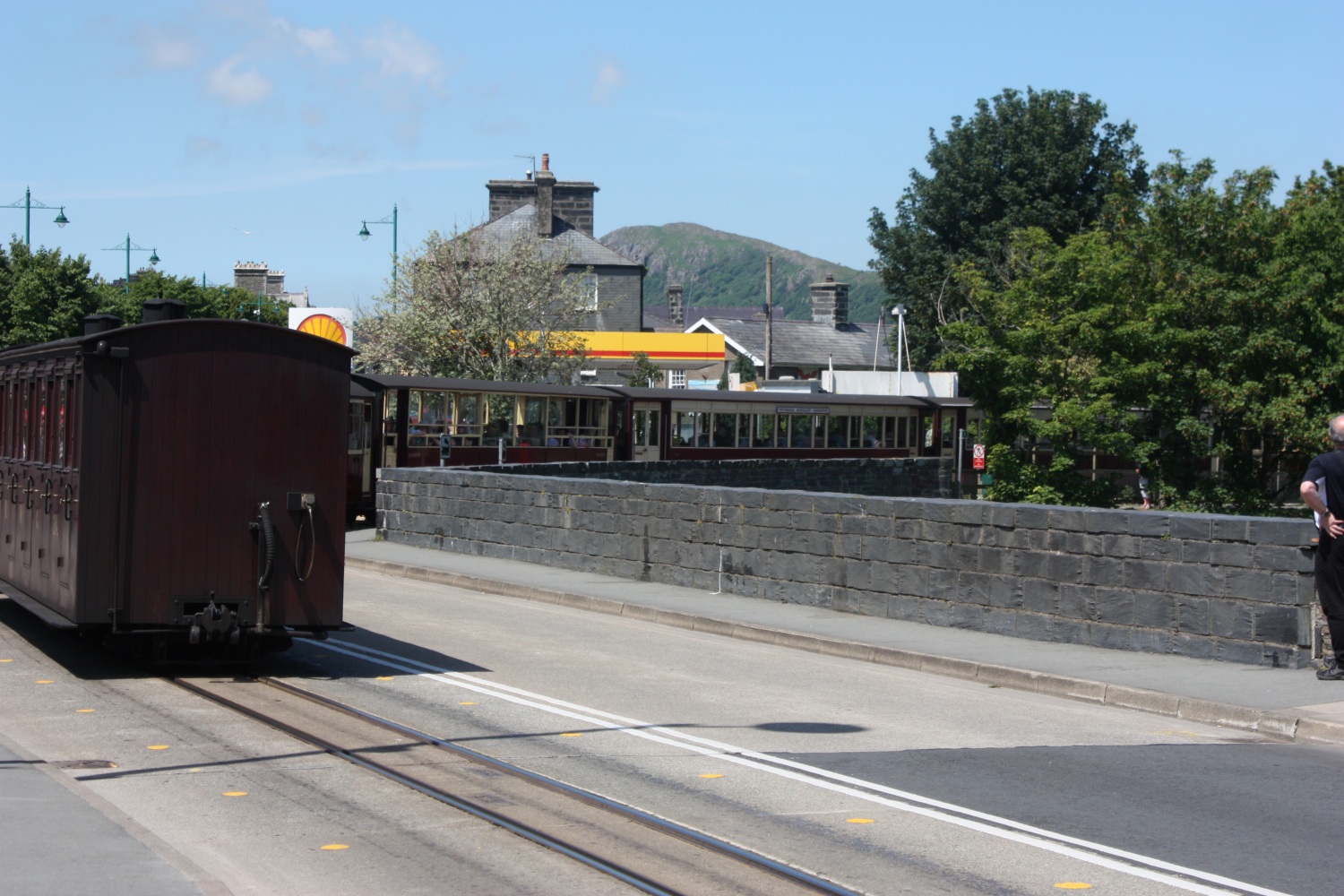Most of the train is now off the street and onto its own trackway alongside the river estuary.