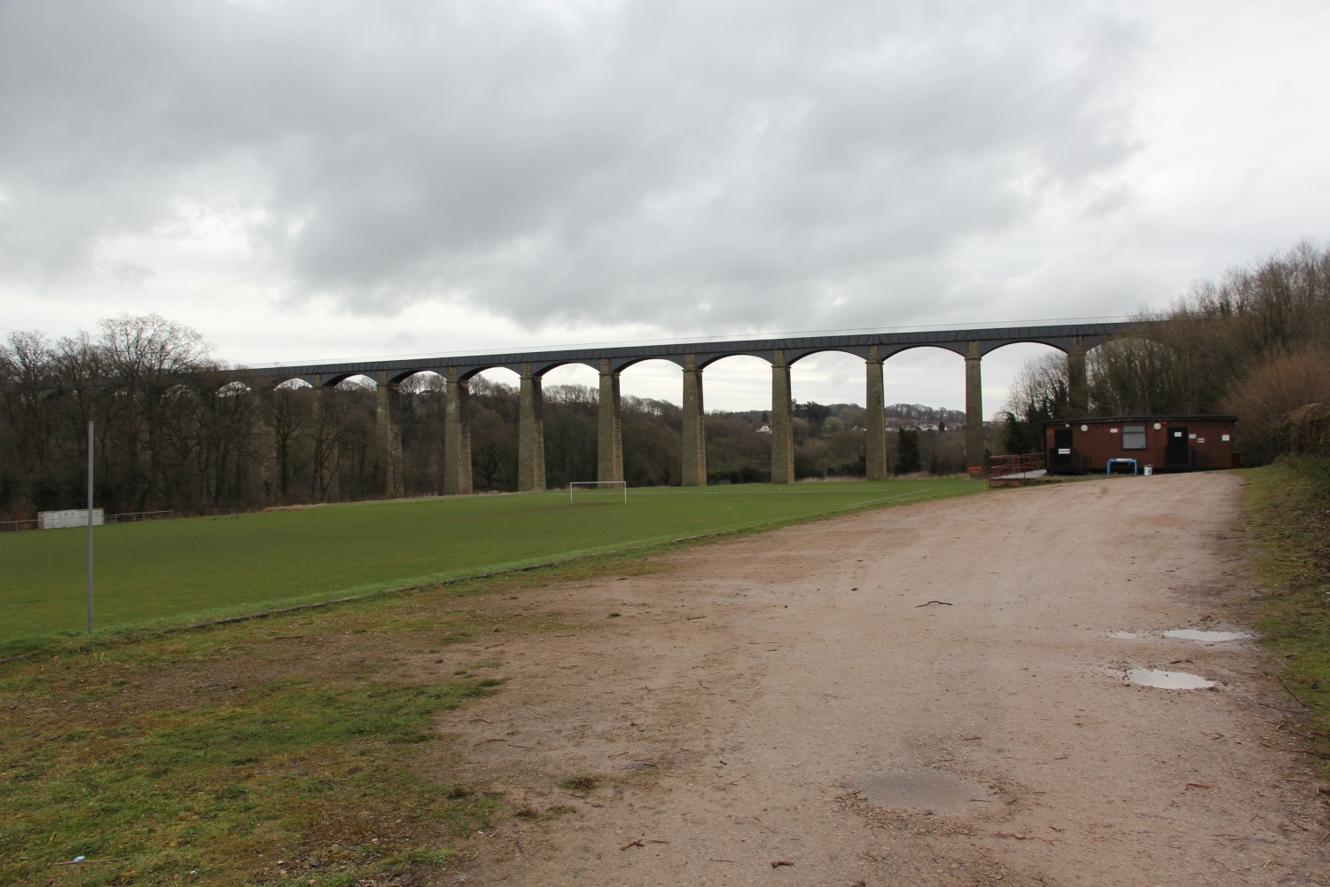 The famous 125ft high Pontcysyllte Aqueduct, seen from the ground. We will shortly be passing over it on the water!