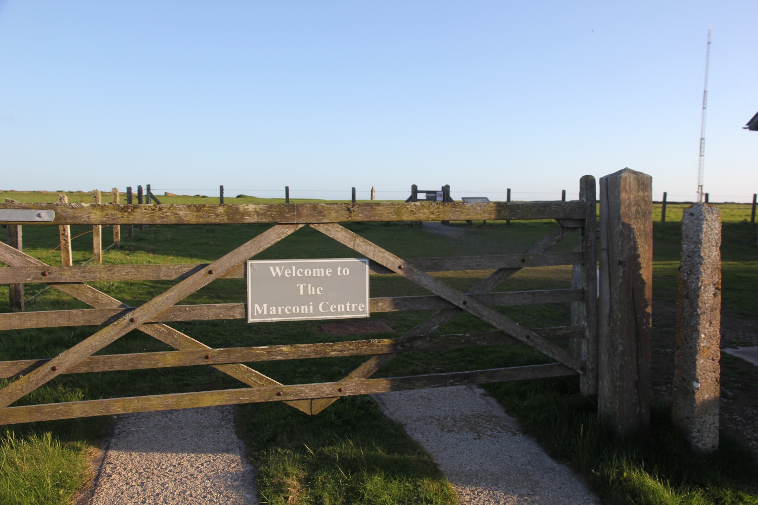 Poldhu - the entrance to the field from where Guglielmo Marconi made the first transatlantic radio transmission.