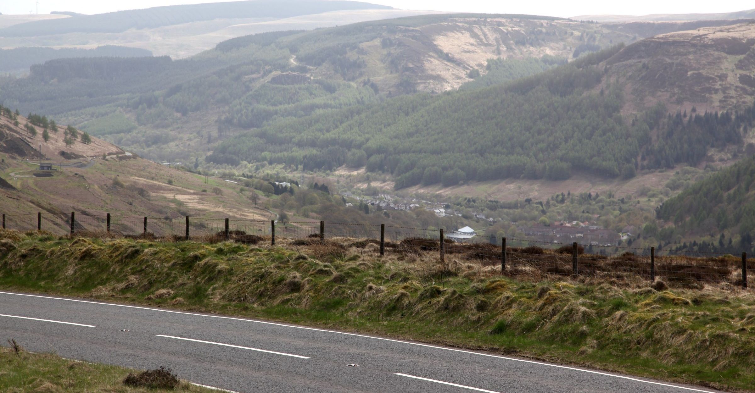 38. Higher up the valley, looking back down the Rhondda. Treherbet is the nearest town, Treorchy in the far distance. The road where the previous two photos were taken from can just be seen upper left of centre.