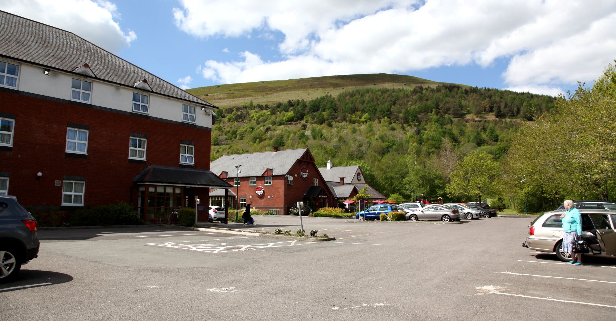 64. A photo of the Premier Inn at Ebbw Vale. Not very exciting, but it shows the views which surrounded it on all sides. The entire valley was at one time dominated by a massive steel works, but the land is slowly being reclaimed and landscaped. |