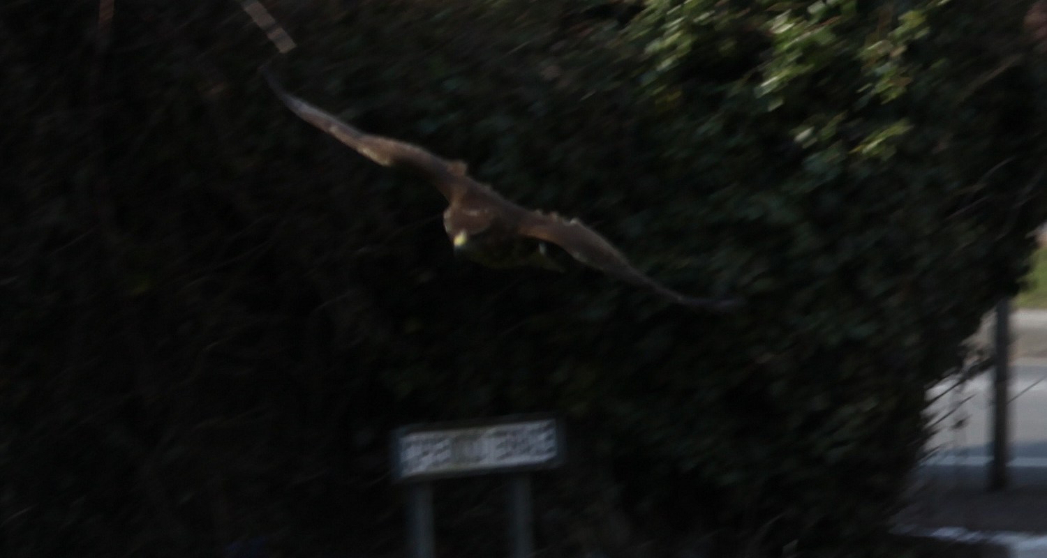 Not a particularly good photo, but I've left it in because it shows the size and wingspan relative to the street-name sign below the bird.