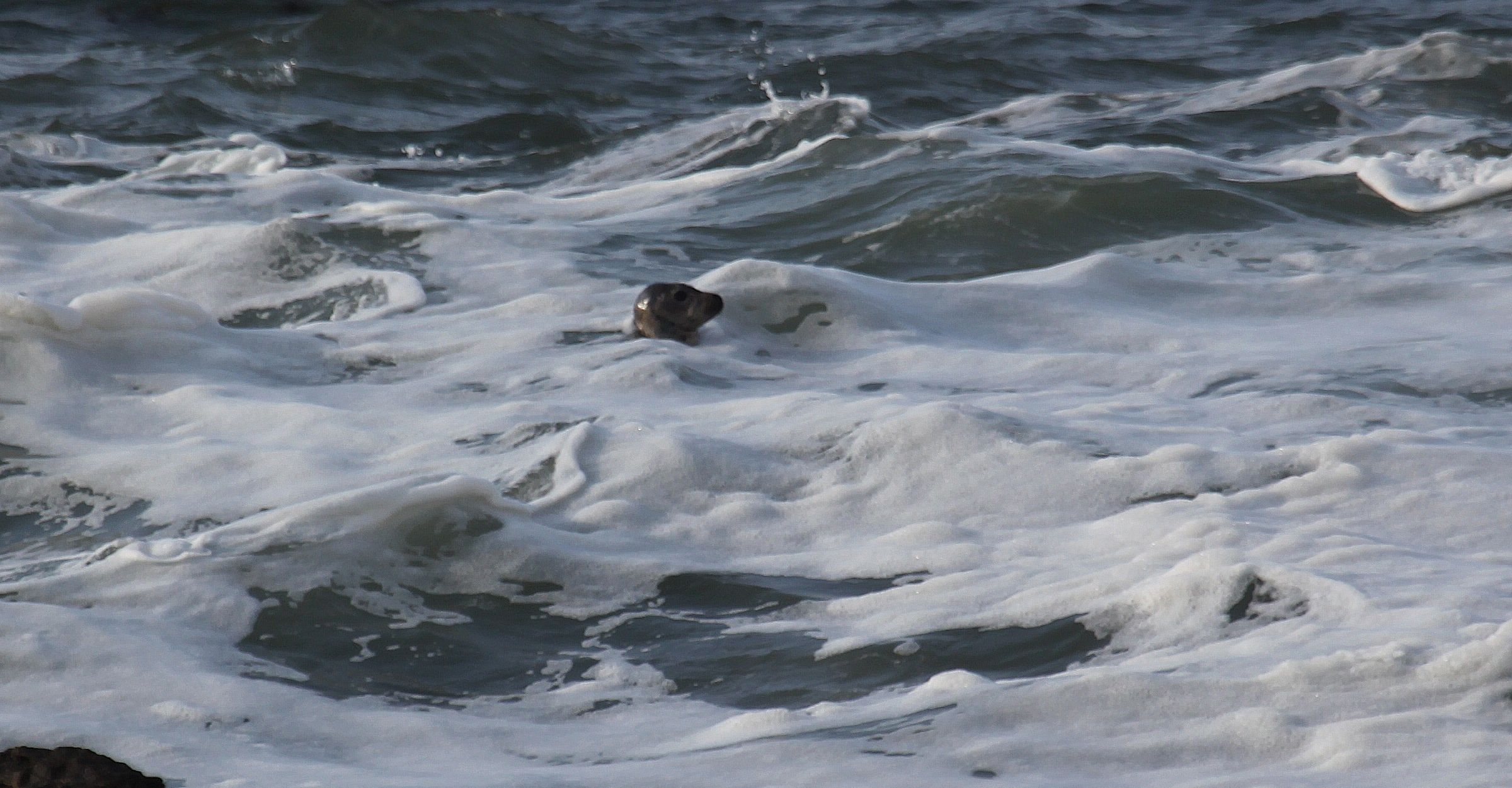 8. Thanks to our unwanted guests, the seals were not basking, but were in the water. What is not obvious here is that this seal is staring straight at the two people who were intruding into his space.