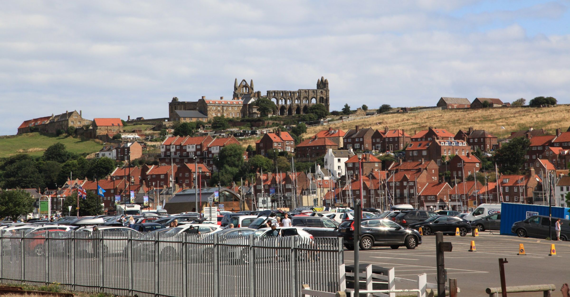 52. As we pull into Whitby we can see the Abbey on the opposite side of the estuary. Our train will wait an hour and a half in Whitby before returning, so the plan is to have a walk round Whitby, get some lunch (fish & chips, of course), and catch the same train back. |