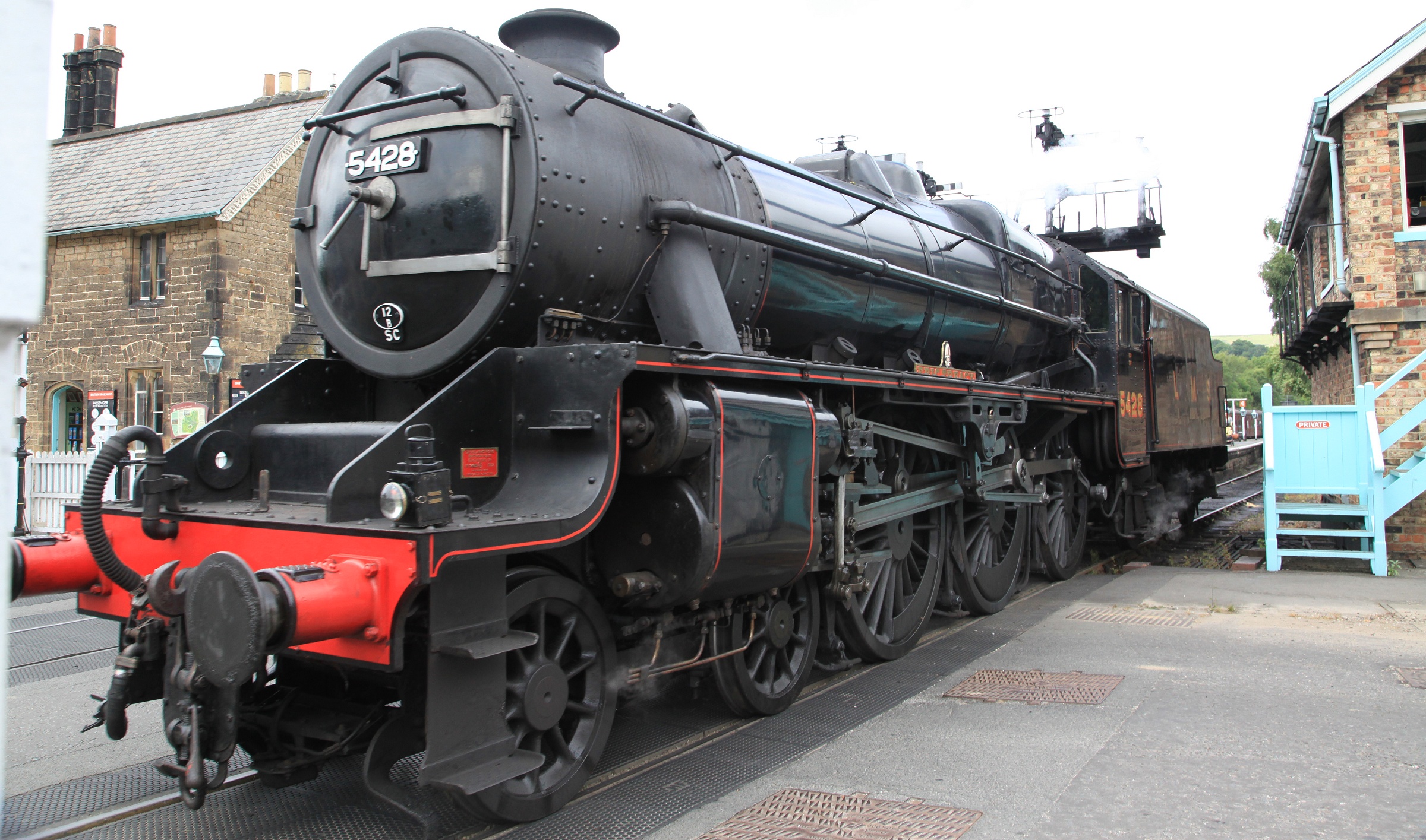 5428 "Eric Treacy", seen crossing the level crossing at Grosmont Station, is an LMS Class 5 locomotive built at Newcastle in 1937. This class was designed by Sir William Stanier, and were known as "Stanier Black Fives". It was withdrawn in 1967. It was named "Eric Treacy" after preservation, in honour of the late Eric Treacy, Bishop of Wakefield, who was an eminent railway photographer. |