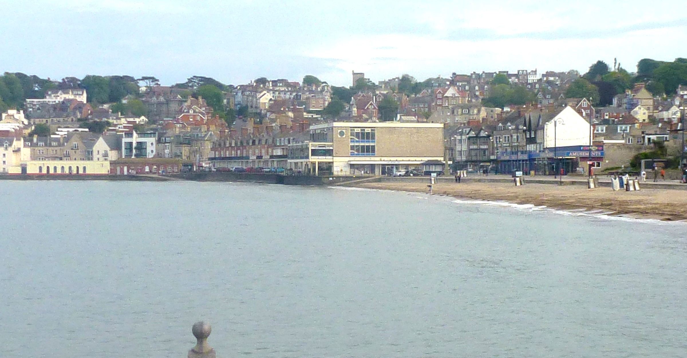 From along the promenade the view of the flat is obscured by the Theatre/Cinema complex.