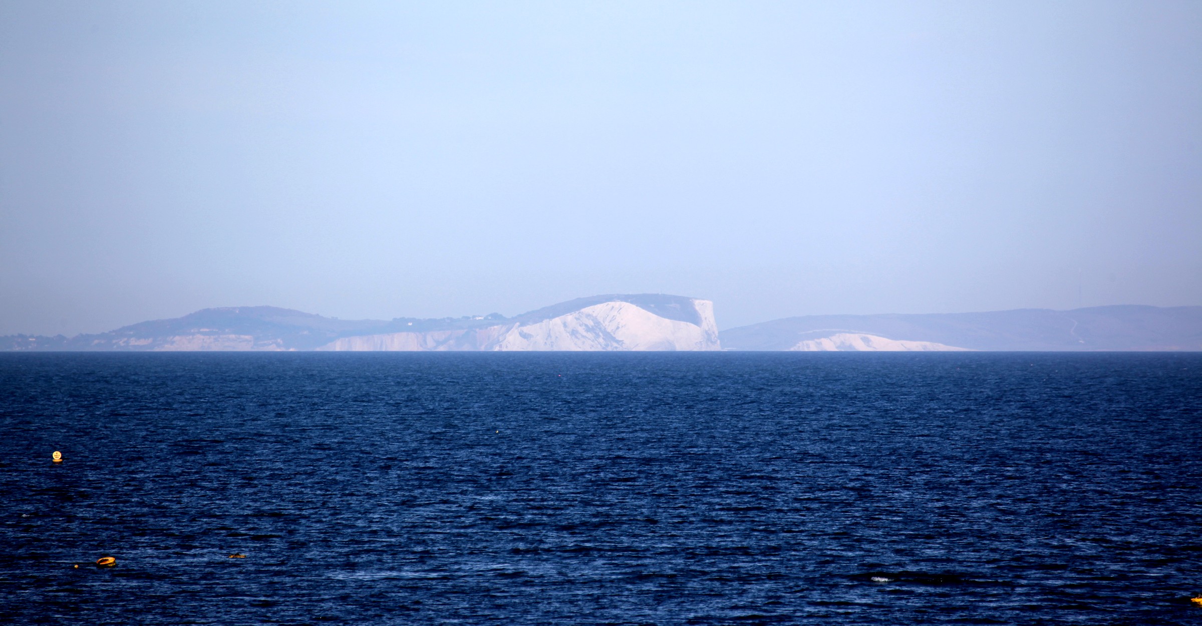 With the long lens and a clear day, this is the western end of the Isle of Wight, nearly 17 miles away.