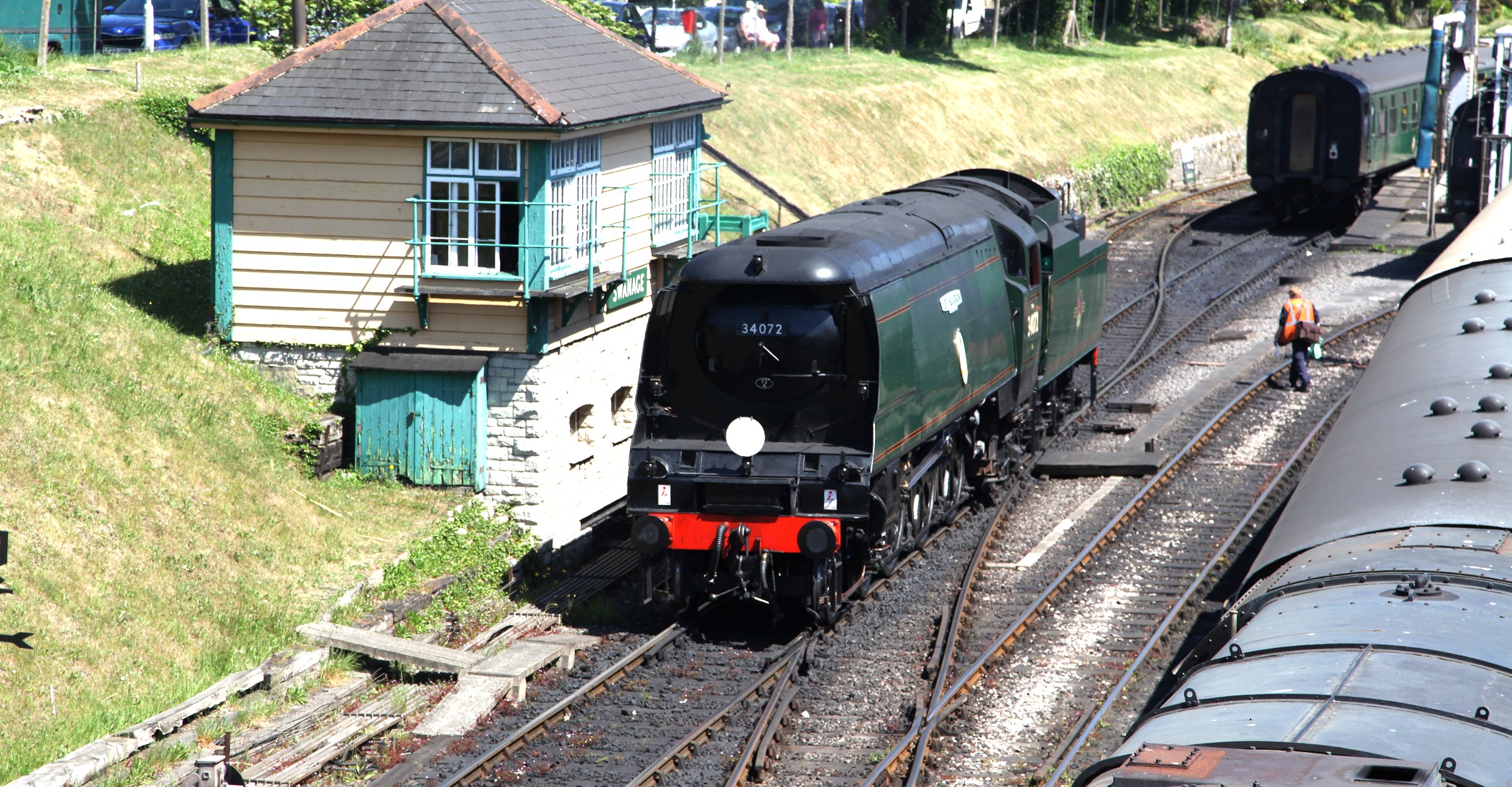With the Diesel Gala over the trains are back to normal length and the loop can be used again. "257 Squadron" has just come from the far end of the train it brought in, run round the loop and is about to be attached to the other end for the next journey.